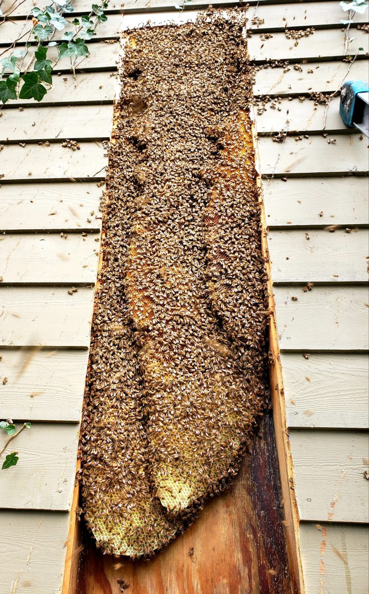 Photo Gallery June 28th, 2025 beekeeper-removing-bees.jpg hanging-bee-swarm.jpg exposed-honey-bee-hive-cedar-siding.jpg honey-bees-comb-overhang.jpg honey-bees-in-eaves.jpg honeybees-behind-siding.jpg honeybee-removal-from-roof.jpg honeybees-in-wall.jpg huge-honey-bee-colony-on-window.jpg huge-exposed-honey-bee-hive.jpg large-bee-swarm-on-ceiling.jpg 3-removing-piece-of-comb 2-exposed-colony buy-local-honey how-i-became-a-bee-removal-expert id-your-bee live-honey-bee-removal-and-relocation services winters-impact-on-bees-and-their-hives-what-you-should-know yellow-jacket-removal hornet-removal « ‹ of 2 › »
